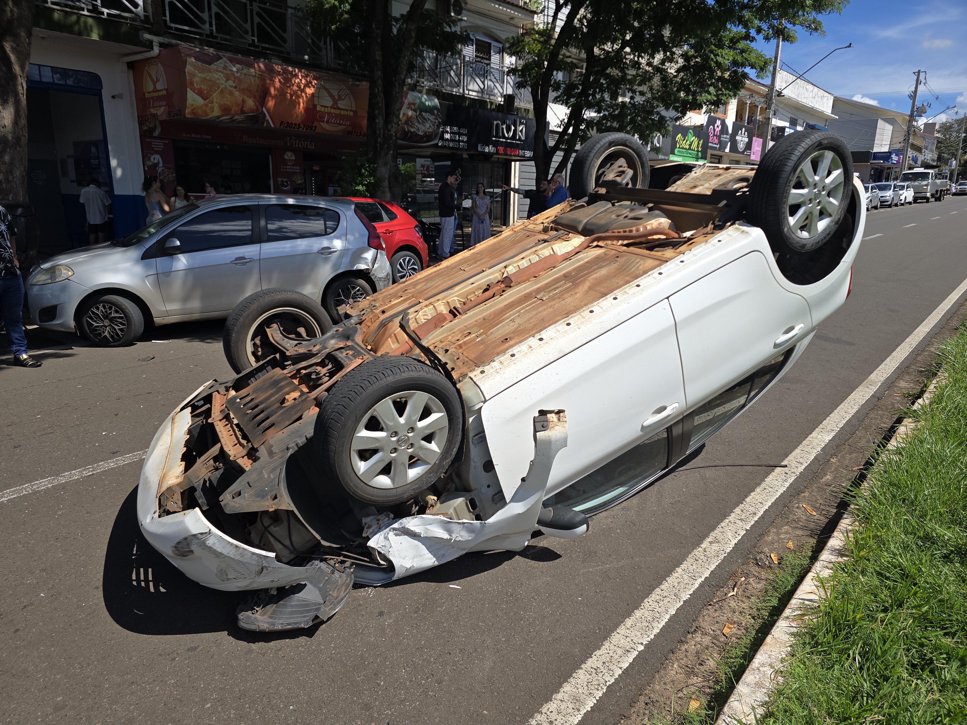 A condutora do Palio tentava estacionar na via quando houve o impacto. Com a batida, o Fiat Palio capotou e, desgovernado, ainda atingiu um terceiro veículo que estava estacionado na avenida. O impacto causou danos materiais significativos, mas, apesar do susto, não houve vítimas.