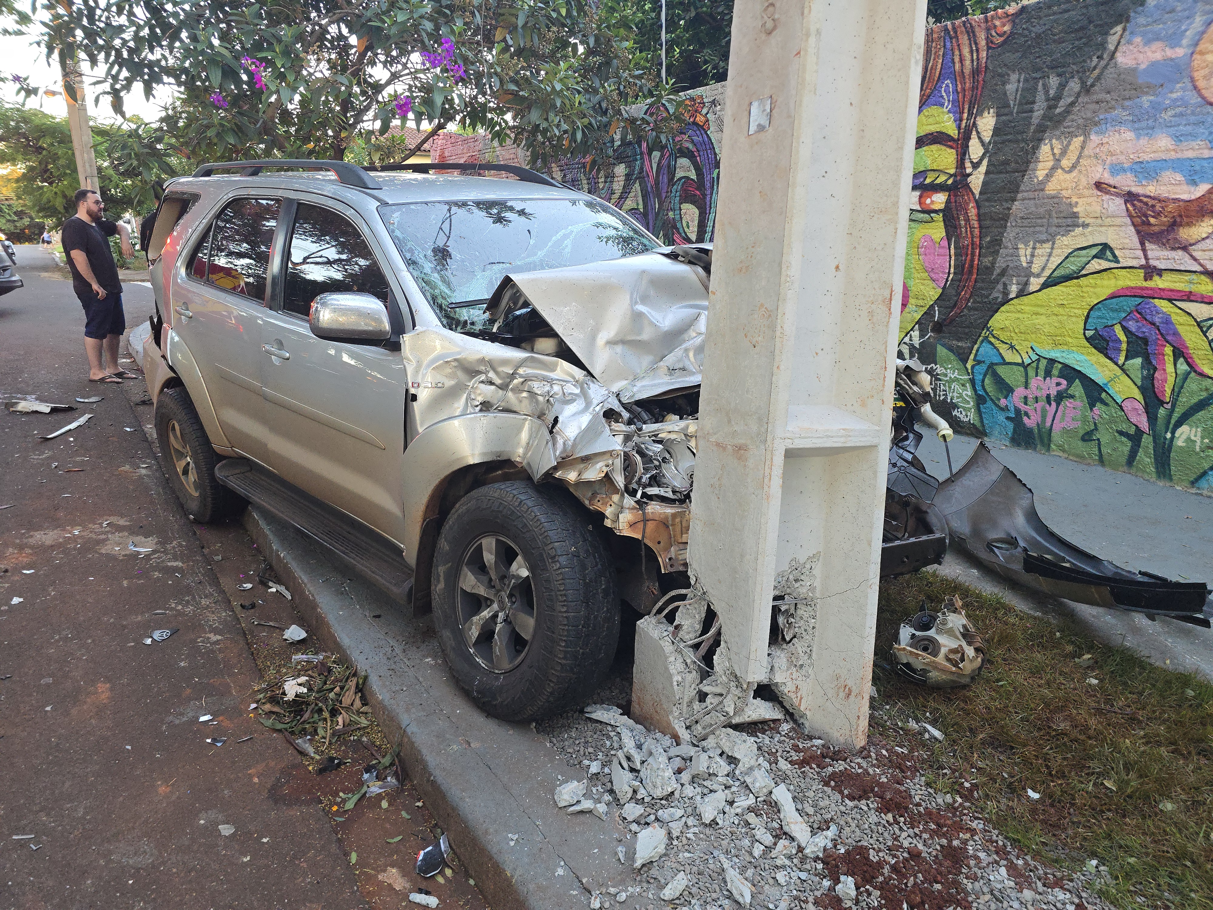 A perseguição terminou na rua Rui Barbosa, na Zona 6, esquina com a rua da Penha, quando o motorista da caminhonete invadiu a preferencial e colidiu com um ônibus do transporte coletivo da Cidade Canção, que não tinha relação com a confusão. Na sequência, a SW4 ainda atingiu violentamente um poste.
