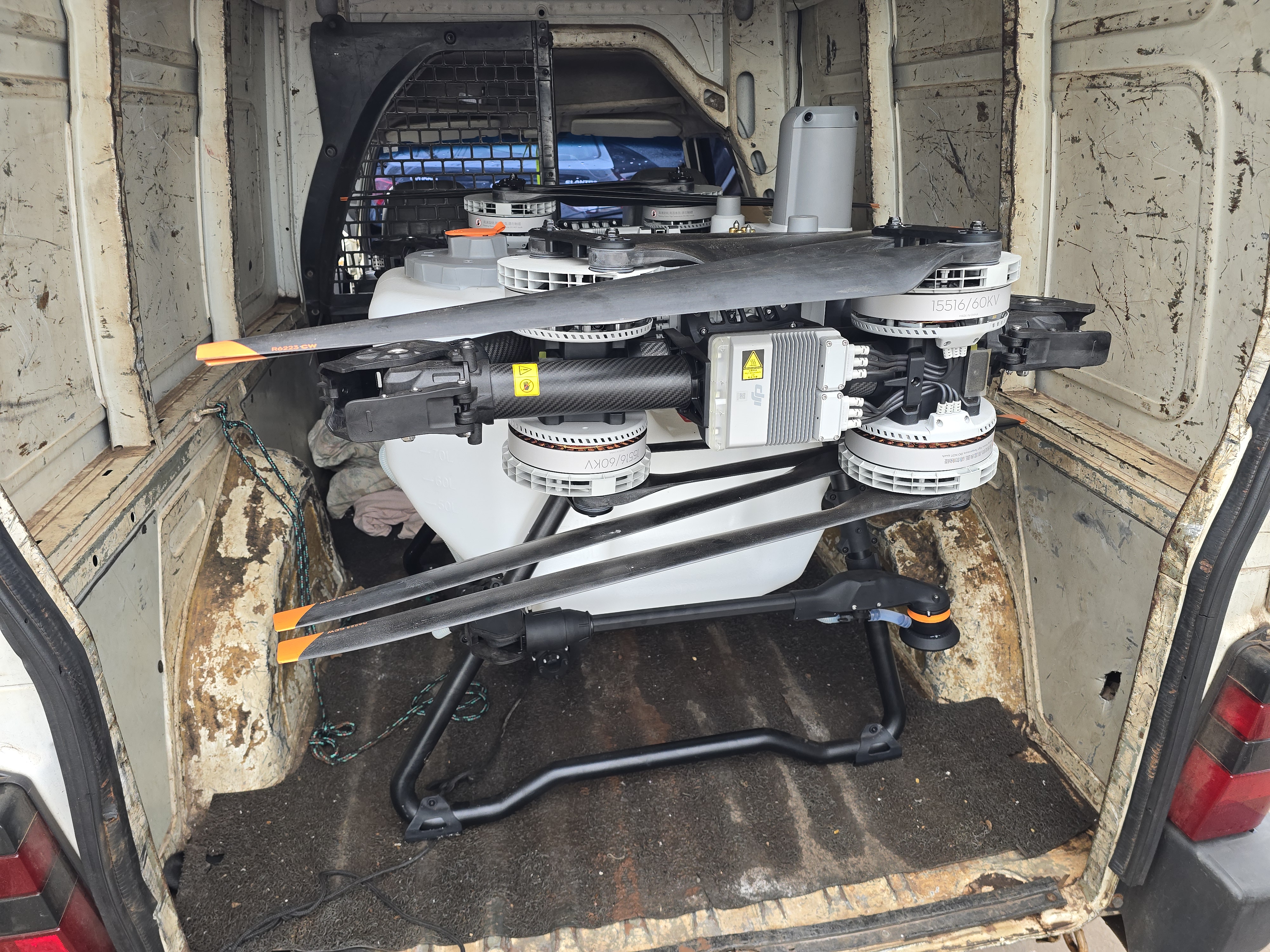 Com apoio da Polícia Civil de Maringá, os quatro suspeitos foram detidos no pátio de um posto de combustíveis localizado às margens da rodovia PR-317, na saída para Campo Mourão. No local, os policiais encontraram o drone agrícola na carroceria de uma Fiat Fiorino.